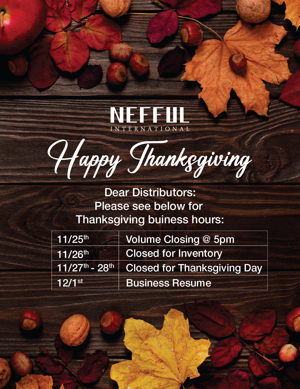 2025 Thanksgiving Holiday Closure Notice